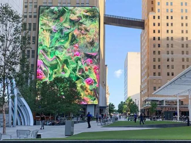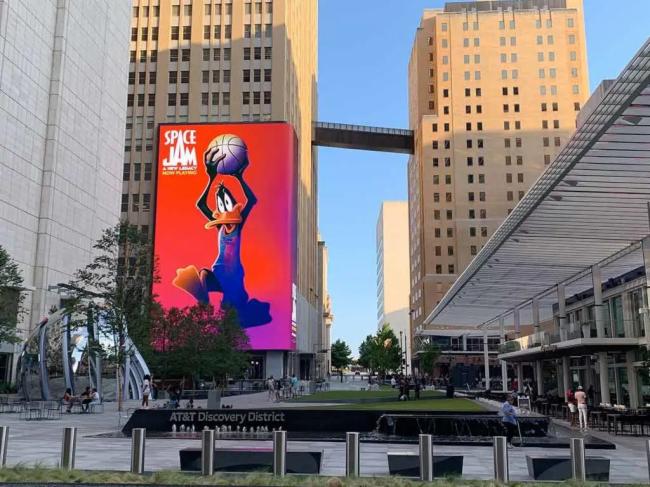 這一栩栩如生的畫面,上演于美國得克薩斯州的達拉斯市中心——全球知名通信公司AT&T總部大樓外墻的裸眼3D屏上 。這塊近1000平米 的裸眼3D高清大屏 ,讓整座大樓頓生活力,令所有看到它的人都贊嘆不已。