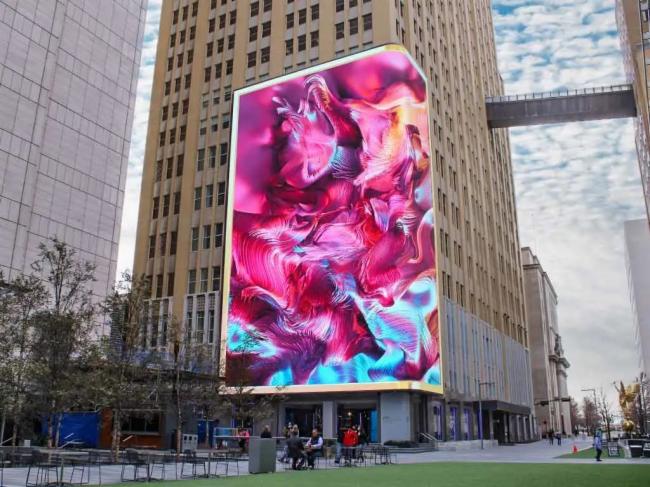作為全球知名的通信公司,AT&T意將其總部大樓打造成為“內外兼修”的視聽體驗殿堂,而這塊裸眼3D大屏便是建筑的焦點之一。屏幕采用P6.67點間距,分辨率為3840×4752,總像素達1820萬,是美國達拉斯市中心耀眼和備受矚目的戶外顯示大屏之一。