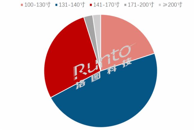 從LED企業在一體機的布局看,尺寸范圍涵蓋了從108到220寸。131-140寸占到了最大的出貨量份額,高達47%;141-170寸和100-130寸分別占到了28%和20%。