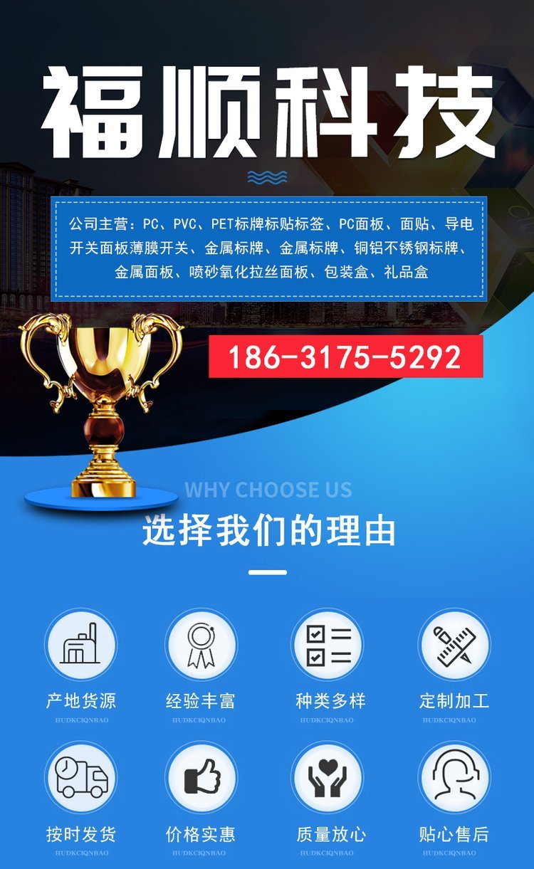 本網頁所展示的有關【PVC面貼標牌銘牌 PC薄膜按鍵控制 金屬吊牌標簽】的信息/圖片/參數等由的會員【黃驊市福順科技有限公司】提供,由找標牌網會員【黃驊市福順科技有限公司】自行對信息/圖片/參數等的真實性、準確性和合法性負責,本網站僅提供展示服務,請謹慎交易,因交易而產生的法律關系及法律糾紛由您自行協商解決,本網站對此不承擔任何責任。您在本網頁可以瀏覽【PVC面貼標牌銘牌 PC薄膜按鍵控制 金屬吊牌標簽】有關的信息/圖片/價格等及提供 【PVC面貼標牌銘牌 PC薄膜按鍵控制 金屬吊牌標簽】的廠家公司簡介、聯系方式等信息。