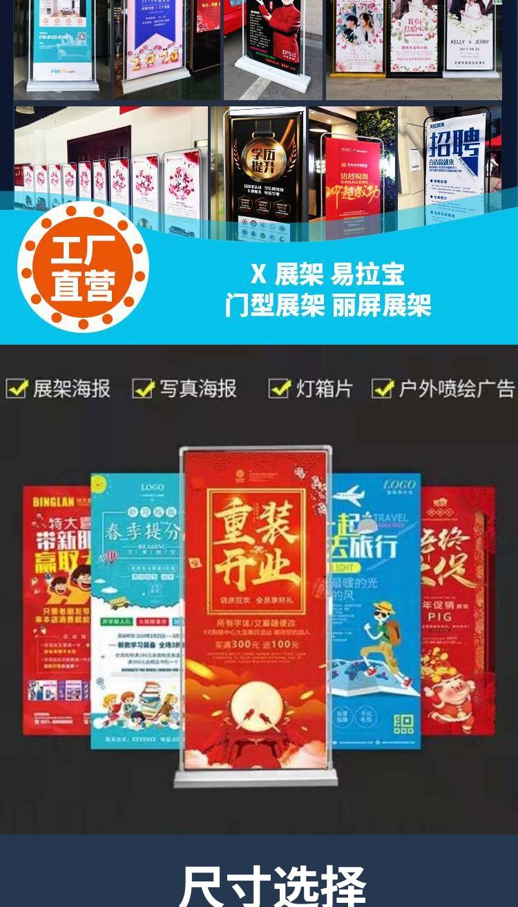 立式落地式門型X型展架易拉寶 80x180 可定制海報