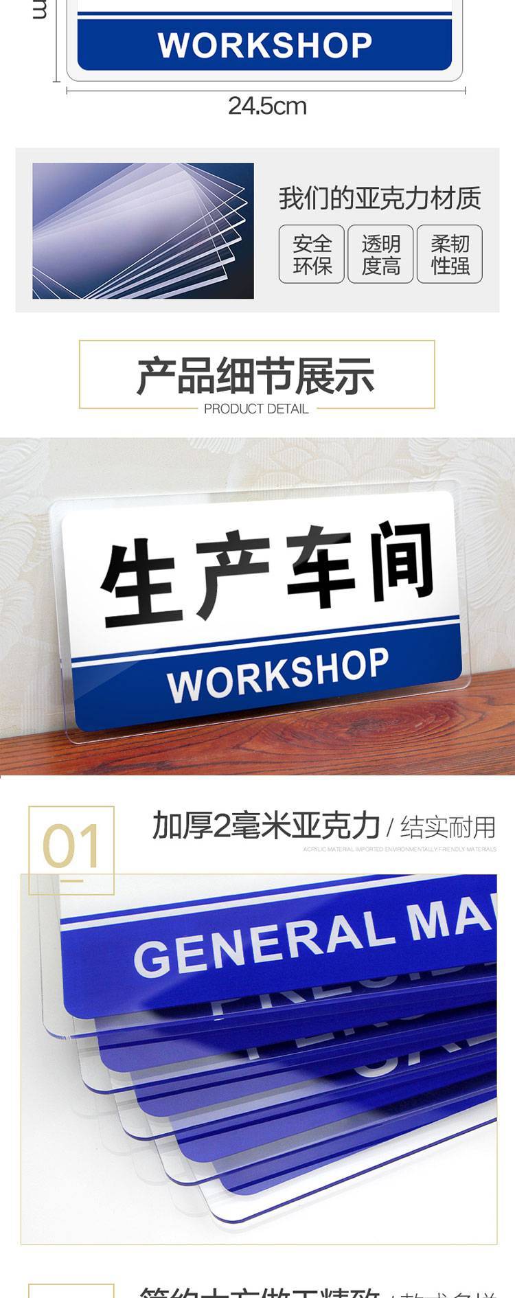 車間亞克力標識牌 工¥25.00/個